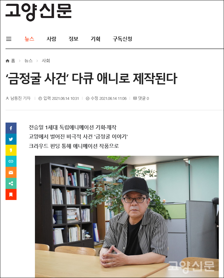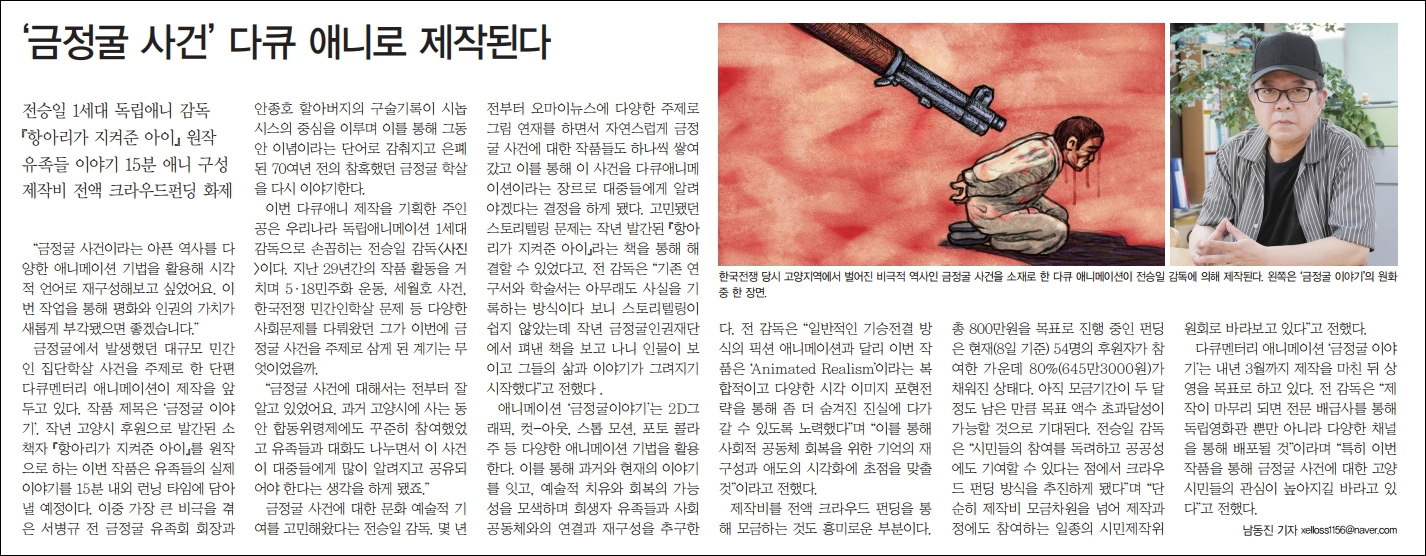 전승일 '금정굴 사건' 다큐 애니로 제작된다 (고양신문)